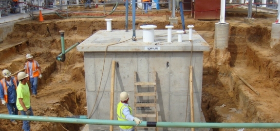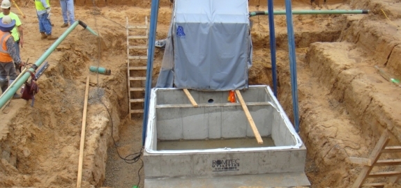 Romtec Utilities worked with Enbridge Energy Partners (EEP) and Audubon Engineering to engineer a packaged system to safely manage the stormwater at the plant. From a design standpoint, this pump station illustrates the value placed on environmental responsibility. The engineering specifications proposed a rectangular concrete wet well, which can have implications on pump station construction. Rectangular wet wells are typically cast in 4-foot-tall segments.