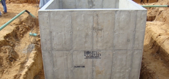 All of the stormwater gets pumped into a holding tank which is then emptied into trucks for transportation to an offsite water treatment facility. With this type of stormwater plan, EEP installed a very reliable stormwater system at the Ajax Gas Plant. Romtec Utilities works with many industrial clients like EEP that are “leading the changes” of the new environmental climate.
