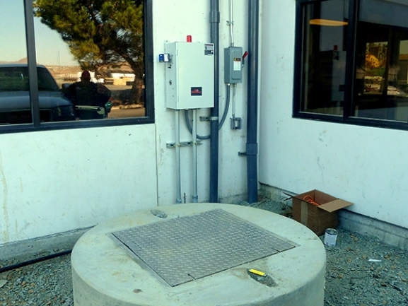 This food processing plant in Benicia, California needed a wastewater lift station to handle combined sewage and process water from the production of pasta. The lift station design included Tsurumi grinder pumps in a duplex configuration. These submersible grinder pumps were included to handle pasta and cheese that occasionally get into the process water. The system electrical controls comprise a standard UL listed panel with float controls for liquid level sensing. The lift station pumps into an existing sewer main and on to treatment.