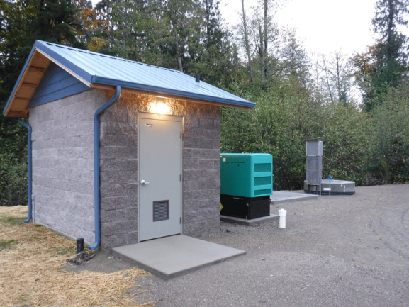 The City of Bremerton needed a new sewer lift station to handle medium flows of wastewater from a new residential development. A precast concrete wet well was designed for a duplex pump configuration with solids-handling pumps for wastewater applications. Romtec Utilities supplied a control building to house the electrical control panel with separate enclosures to meet the City standards. It also contained an automatic transfer switch for the Cummins emergency backup generator. A turbine air pump was installed to pressurize and vent the valve vault structure for occupancy safety requirements.