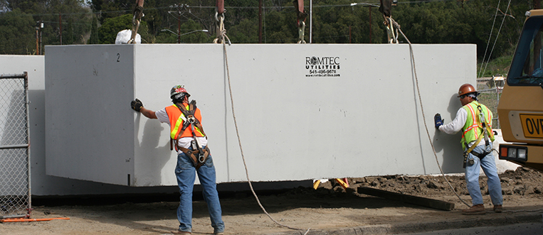 When Harper Construction won the design-build contract for bachelor’s enlisted quarters at Camp Pendleton, it contacted Romtec Utilities to provide the lift station replacement. Working directly with Harper Construction and the engineering corps at Camp Pendleton, Romtec Utilities proposed a submersible lift station design for the replacement. This design was changed to include a meter vault, a grinder vault, and an odor control system. The added components led Camp Pendleton and Harper Construction to request an alternate design with a wet-dry configuration. Romtec Utilities provided new designs for a sophisticated wet-dry wastewater lift station. The wet-dry configuration was not as economical, but for Camp Pendleton and Harper Construction to advantages for maintenance, ease of use, and sophistication was better aligned to their goals and preferences.