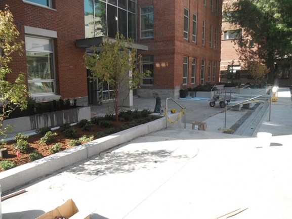 This package pump system was designed to meet low flows of stormwater expected after the expansion of this university building.