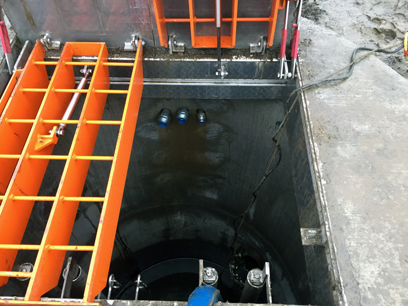 Romtec Utilities designed and supplied a stormwater pump station for an industrial chemical refining plant in Forest Grove, Oregon. The pumping system collects and discharges stormwater into an onsite treatment system to remove contaminants before being discharged. Two Ebara 7.5hp submersible pumps were installed in a duplex configuration. Thermal and leak detection relays inside the pumps will automatically trigger warnings to notify personnel in the event of pump or seal failures. The discharge valves were installed directly in the 18’ wet well to conserve space onsite. Electrical controls for the system were designed and supplied by Romtec Utilities with an alternator relay controller mounted and installed inside a NEMA 4 painted steel enclosure. The system has remote monitoring and operation capabilities through Romtec Utilities SCADA Connect over a cellular connection.