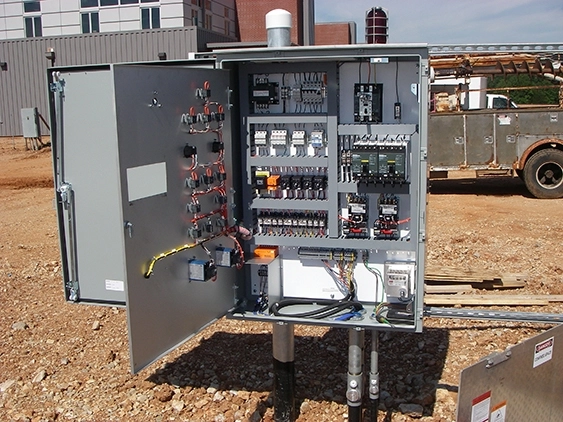 Outdoor UL listed control panels utilize float controls for level-sensing and soft starters to provide advanced pump diagnostics and to reduce inrush currents. Auto dialers were specified for communications for both systems.