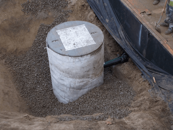 Seismic upgrades to the Washington County Public Service Building required the installation of five stormwater pump stations. The pumping systems keep groundwater levels down around the large building with four systems surrounding the property and one in the basement of the building. Romtec Utilities used Ebara 1hp pumps in duplex configurations on the exterior systems and 1/3hp pumps for the interior pump station. All five wet wells are perforated and wrapped to allow groundwater to percolate into the structure to manage groundwater levels. Stormwater levels are detected with Nolta mechanical floats. The pump stations are controlled using an alternator control panel configured by Romtec Utilities for this duplex pumping application.