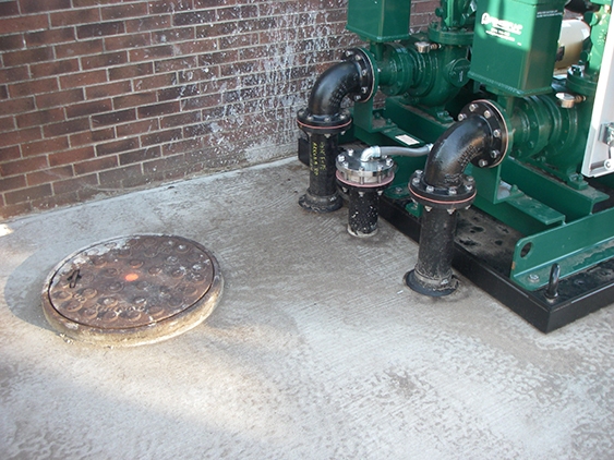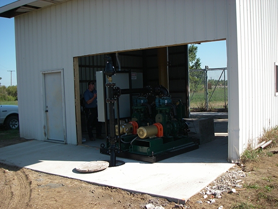 Preassembled above-grade skids with Pioneer self-priming pumps in duplex configurations drop suction piping into the existing sumps to pump effluent to the existing force mains.