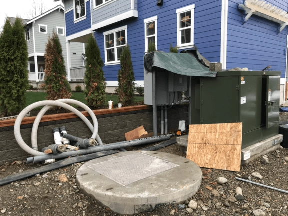 North Bend Cottages is a small housing development located in the downtown area of North Bend, Washington. While developing the property, Rivers West Development, reached out to Romtec Utilities for the design and supply of a site-specific stormwater system to meet the requirements of their project. The design criteria for the pump station, including flow requirements, elevations, and information regarding the new and existing force main was supplied by Group Four, the engineering firm working for the developer. Overflow protections were added to the system to meet the local municipality’s design standards for new stormwater management systems as well. The complete system design was reviewed and approved by Pertreet, an engineering consultant for the City. The developer also installed the pump station while Romtec Utilities provided an install adviser onsite. Once the final site work was completed and power was available, Romtec Utilities sent a start-up technician to the job site to commission the pump station and provide training for the owners and operators.