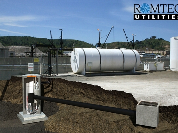 A California pump supplier contacted Romtec Utilities to provide complete pump station designs on a project where its pumps were specified. Romtec Utilities is able to design pump stations with any pump brand and provided the supplier with preliminary designs. IMTT and its contractor, Sonnikson & Stordahl Construction Inc., approved of the preliminary designs and worked with Romtec Utilities to create complete design and engineering plans. The final designs included several degrees of redundancy to ensure stormwater from the site would not enter the San Francisco Bay fewer than 50 feet from the pump station. IMTT and Sonnikson & Stordahl were satisfied with the designs and approved the complete Romtec Utilities package.