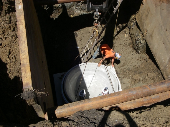 The Green Sanitary District needed to expanded the municipal sanitary sewer lines to accommodate a large book distribution center and chose to install a lift station to accomplish its goals. Romtec Utilities proposed a bid with the contractor, Advanced Excavating Specialists (AES), for the supply and installation of the lift station. Using expert documentation, Romtec Utilities and AES were able to agree on a low cost bid, and the project was awarded to AES with Romtec Utilities supplying the lift station package. Romtec Utilities and AES submitted final design proposals to SHN Engineers, the civil engineering firm, and were approved. AES then installed the packaged lift station with an on-site construction advisor from Romtec Utilities.