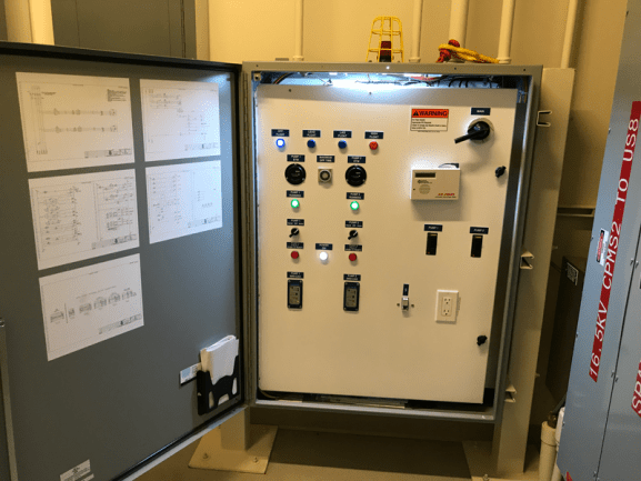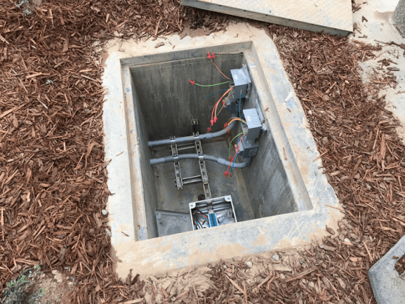 A hospital in Santa Barbara, California needed an engineered pump station to handle medium flows of stormwater. Romtec Utilities used 5hp Flygt submersible pumps in a duplex configuration to meet the flow requirements for this application. In well electrical components such as the pumps and level sensing floats connect to the system control panel through a junction box installed in a below-grade concrete vault. Electrical controls for the pump station include an USP AD-2000, an auto-dialer alarm system to notify personnel of issues with the system as they arise.