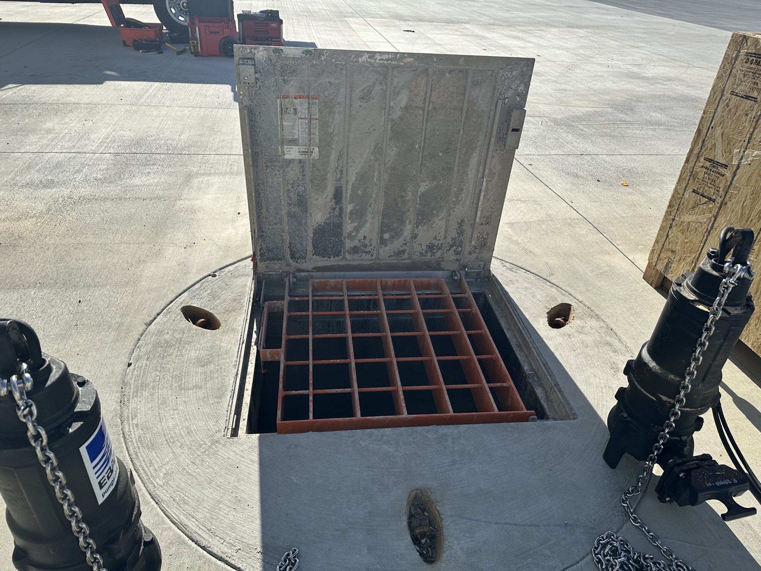 A logistics facility wastewater lift station, prepared for now and future flows, has further considerations which we can help with as the designer of the pump system. Our team of engineers can develop a system similar to this Central Point III system, that will meet now and future flows for a developing logistics facility campus.