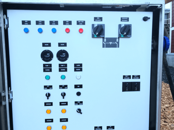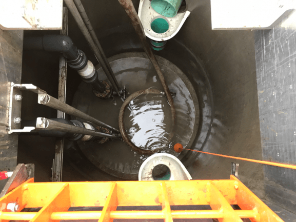 The construction of a new apartment complex in Warrenton, Oregon required a lift station to handle wastewater from approximately 60 new apartment units. Romtec Utilities used Ebara 5hp vortex pumps arranged in a duplex configuration to meet the flow requirements of the new buildings. This lift station required a flood tight top hatch due to high water conditions from the nearby Columbia River and Pacific Ocean. Five mechanical float sensors were installed in a tight cluster to trigger pumps accordingly for high and low activity times. Pump station controls were designed by Romtec Utilities using an alternator controller and mounted inside a secure NEMA enclosure.