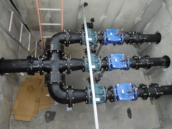 The wastewater pump station features 8′ diameter wet well, 6″ discharge piping, EBARA pumps, and 6″ – 8′ X 10′ vault and pumps up to 844 gallons per minute.